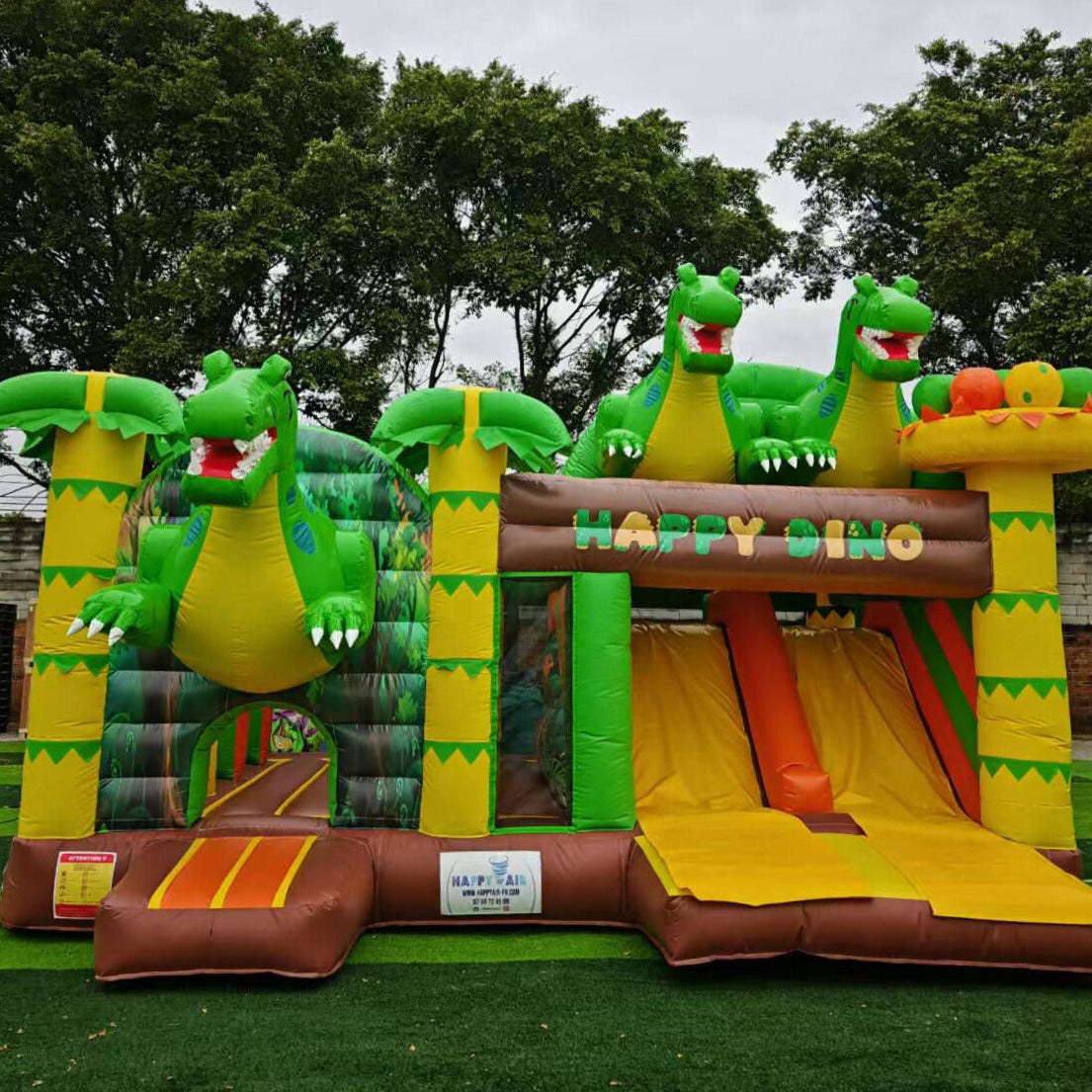 Transformez vos événements en une véritable aventure avec le château gonflable Dino, apprécié pour son design réaliste et ses fonctionnalités pensées pour le plaisir et la sécurité des enfants. Grâce à ses filets de sécurité, vous pouvez surveiller les enfants en toute tranquillité, tandis que le toboggan intégré et les obstacles ludiques garantissent des heures d’amusement. Facile à installer en seulement 10 minutes, ce château est parfait pour animer vos anniversaires, kermesses et événements professionnels.